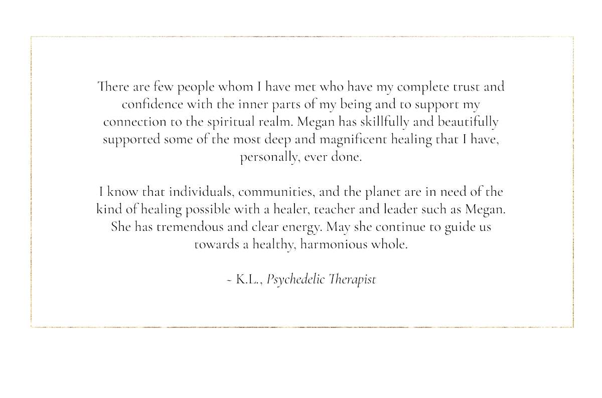 Her path has unfolded through a lifelong devotion to plants, stars and spirit realms, alongside formal clinical and academic training. With a background in biopsychology, medical herbalism, somatic practice, and more than a decade working in mental health and addictions, Megan brings depth, steadiness, and discernment to the spaces she holds. This grounding allows her to guide people through subtle and altered states while remaining anchored, embodied, and present.